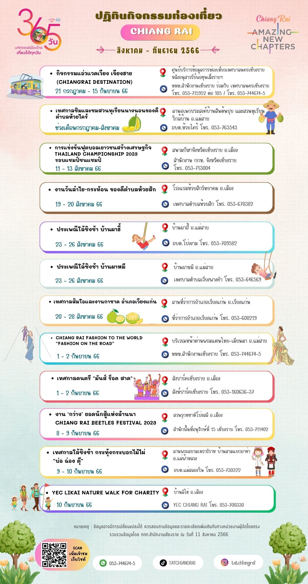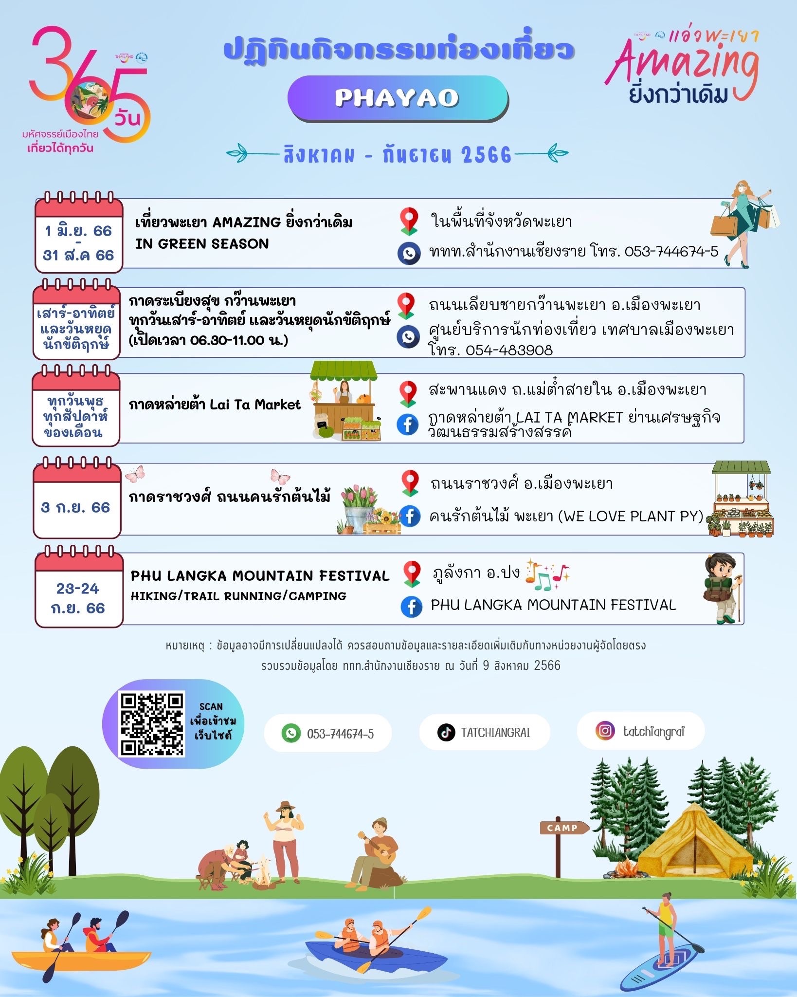 🌿ททท.สำนักงานเชียงราย มาแจกปฏิทินท่องเที่ยวจังหวัดเชียงราย และจังหวัดพะเยา เดือนสิงหาคม-กันยายน 2566 มีกิจกรรมที่ทุกคนรอคอยกันไหมเอ่ย! เชียงราย+พะเยา ยังรอต้อนรับทุกท่านมาสัมผัสบรรยากาศสุดฟินช่วง